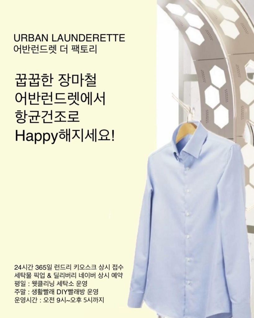 어반런드렛 더 팩토리 Weekend DIY Service 매주 주말 AM 09:00~PM 17:00 DIY(생활빨래대행)서비스를 운영 -—————————————————- 물세탁 ...